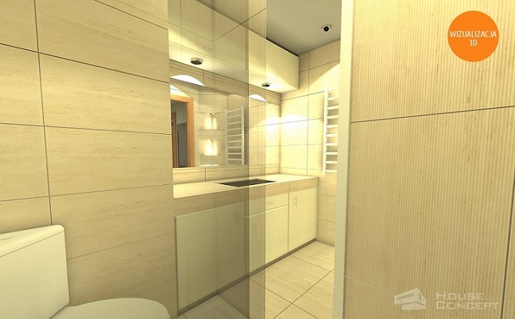Projekt zakładał adaptacje toalety i części korytarza do łazienki celem zwiękrzenia powierzchni i poprawy ergonomi użytkowników.