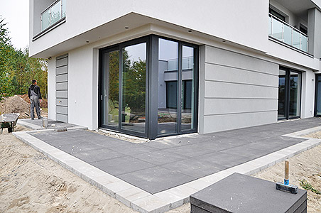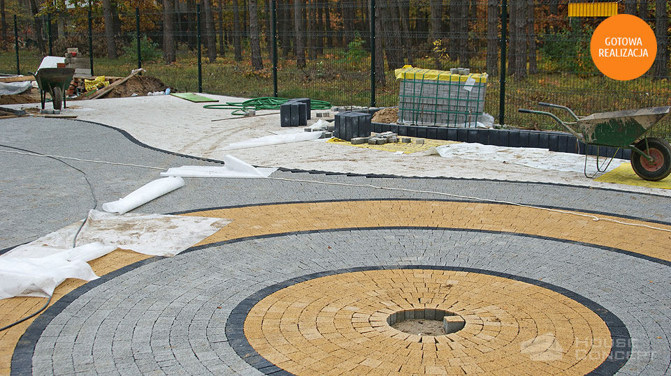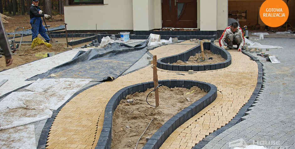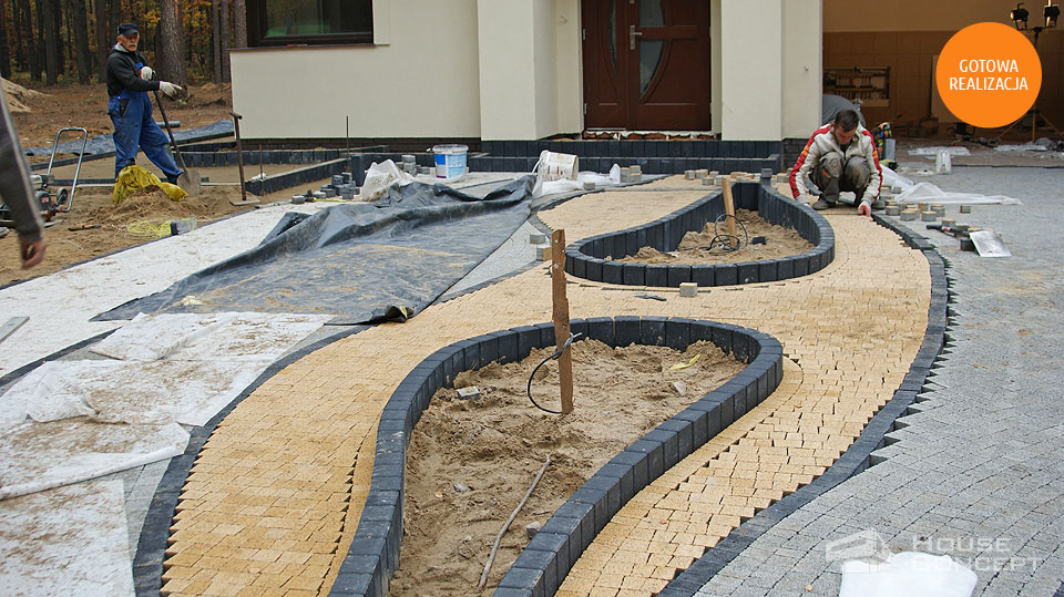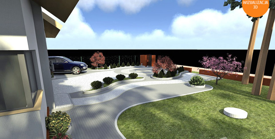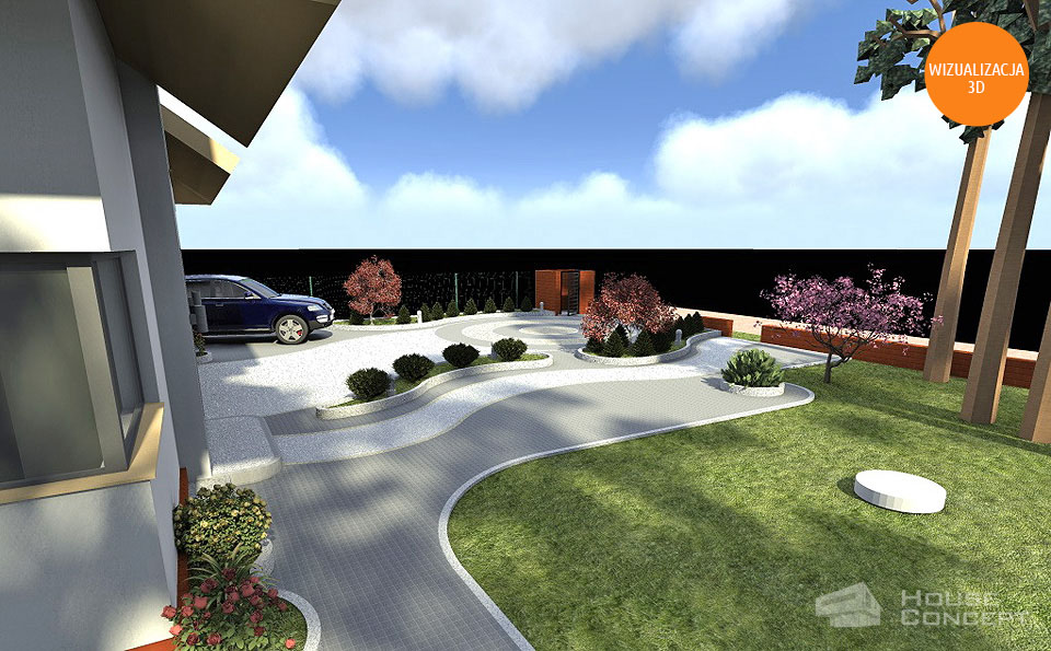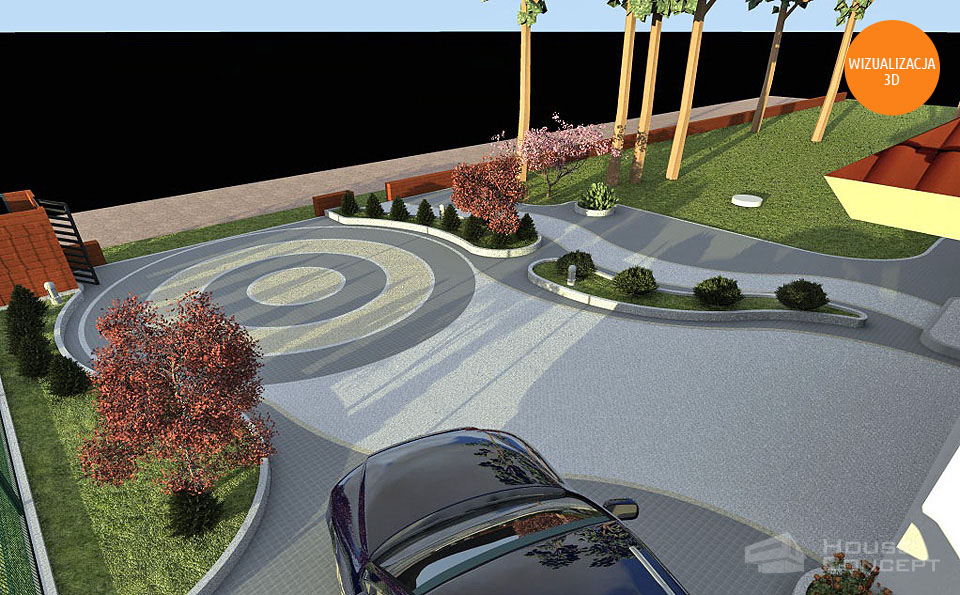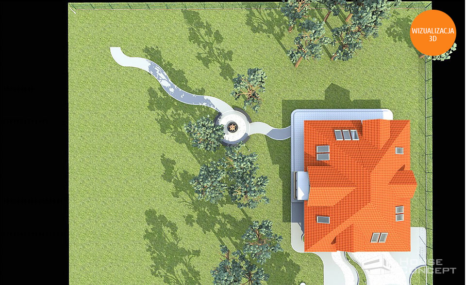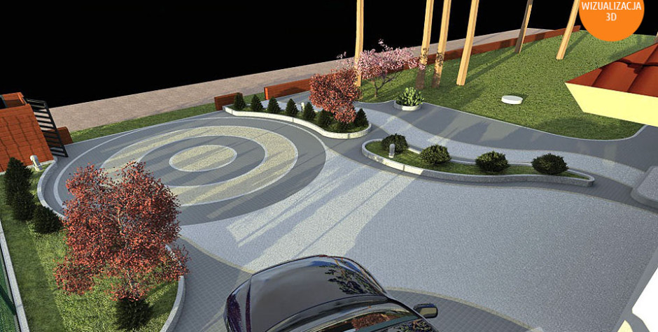 Dom jednorodzinny zlokalizowany w Ustroniu pow. Zgierski. Zlecenie zakładało wykonanie projektu elewacji i oświetlenia budynku wraz z placem znajdującym się przed nim. Życzeniem inwestora było zaproponowanie niebanalnego układu kostki brukowej na drodze i ścieżce prowadzącej do budynku. Dodatkowo po lewej i prawej stronie wykonano klomby wygrodzone palisadami na roślinność i oświetlenie ogrodu. Cokoły budynku zostały częściowo wymurowane z cegły klinkierowej tak samo jak ogrodzenie posesji nawiązującej kolorystyką do pokrycia dachowego a częściowo zostały wykonane jako opaska z wypełnieniem z drobnoziarnistego kruszywa ograniczona palisadą. Na tyłach budynku wykonano taras z którego można przejść do ogniska znajdującego się wewnątrz działki.